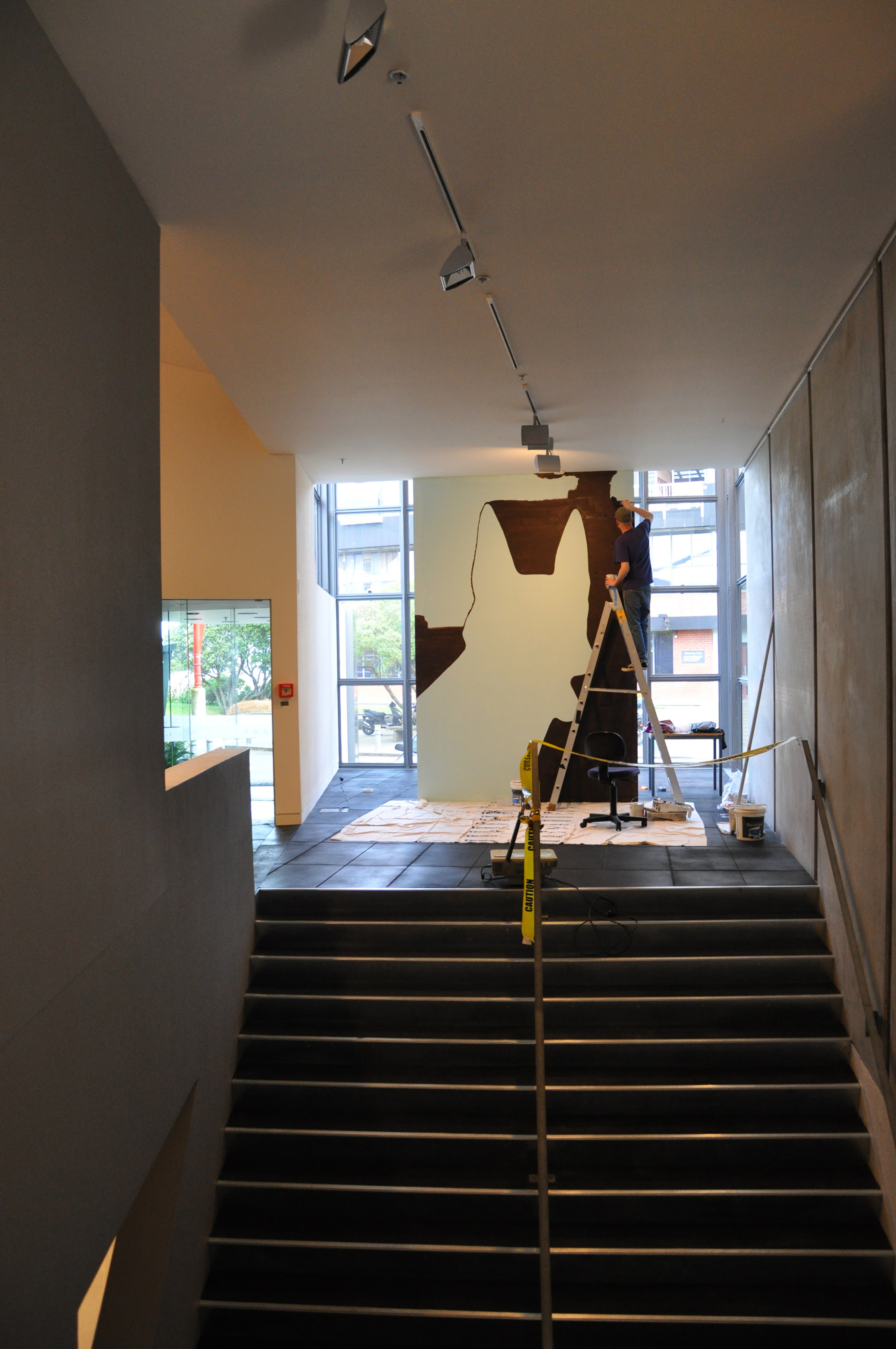 Jeena Shin, Fractus, Congreve Foyer, 2009. Artist installing, Wall Works, Adam Art Gallery Te Pātaka Toi, Victoria University of Wellington, 12 September 2009