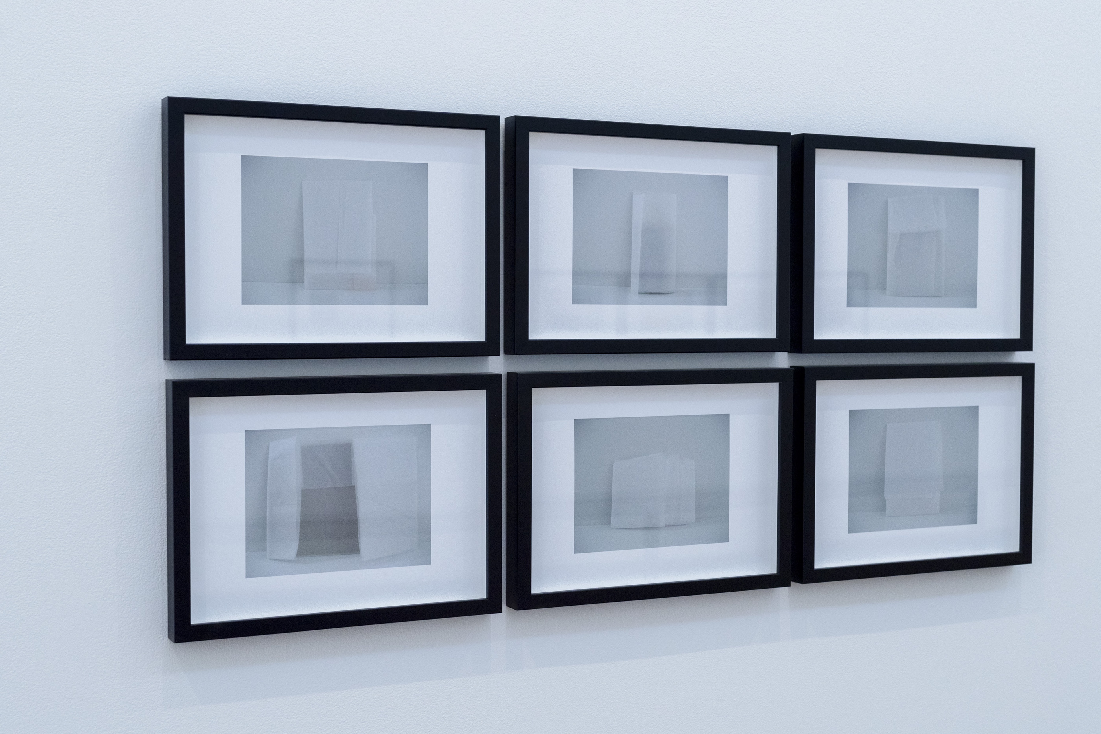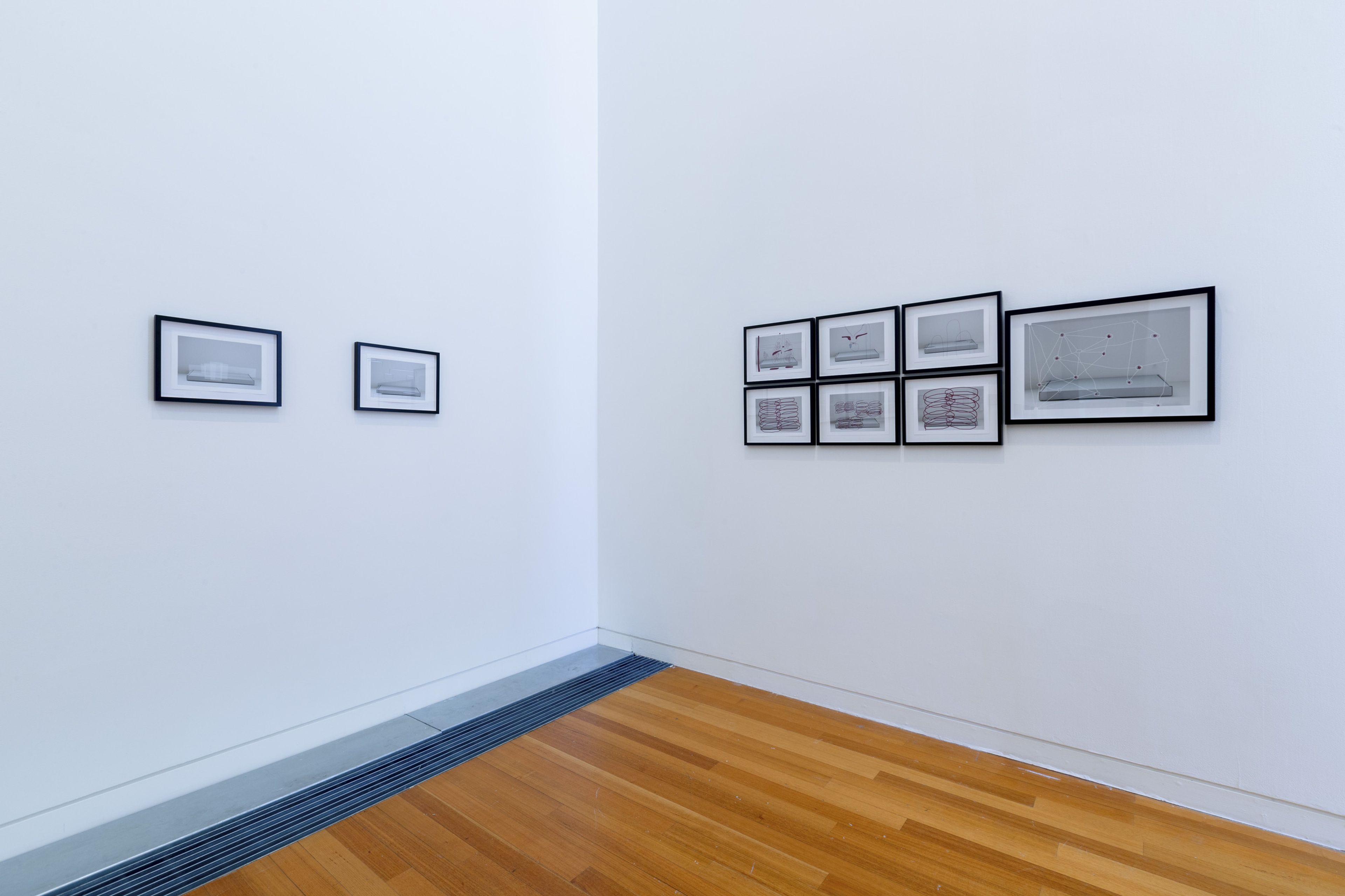 Wendy Bornholdt, from series Tissue Solo, 2015, framed archival prints on Hahnemüle Rag, various widths overall. Installation view, Wendy Bornholdt: Studioland, in Back of House, Te Pātaka Toi Adam Art Gallery, Te Herenga Waka—Victoria University of Wellington, 2023. Photo: Ted Whitaker