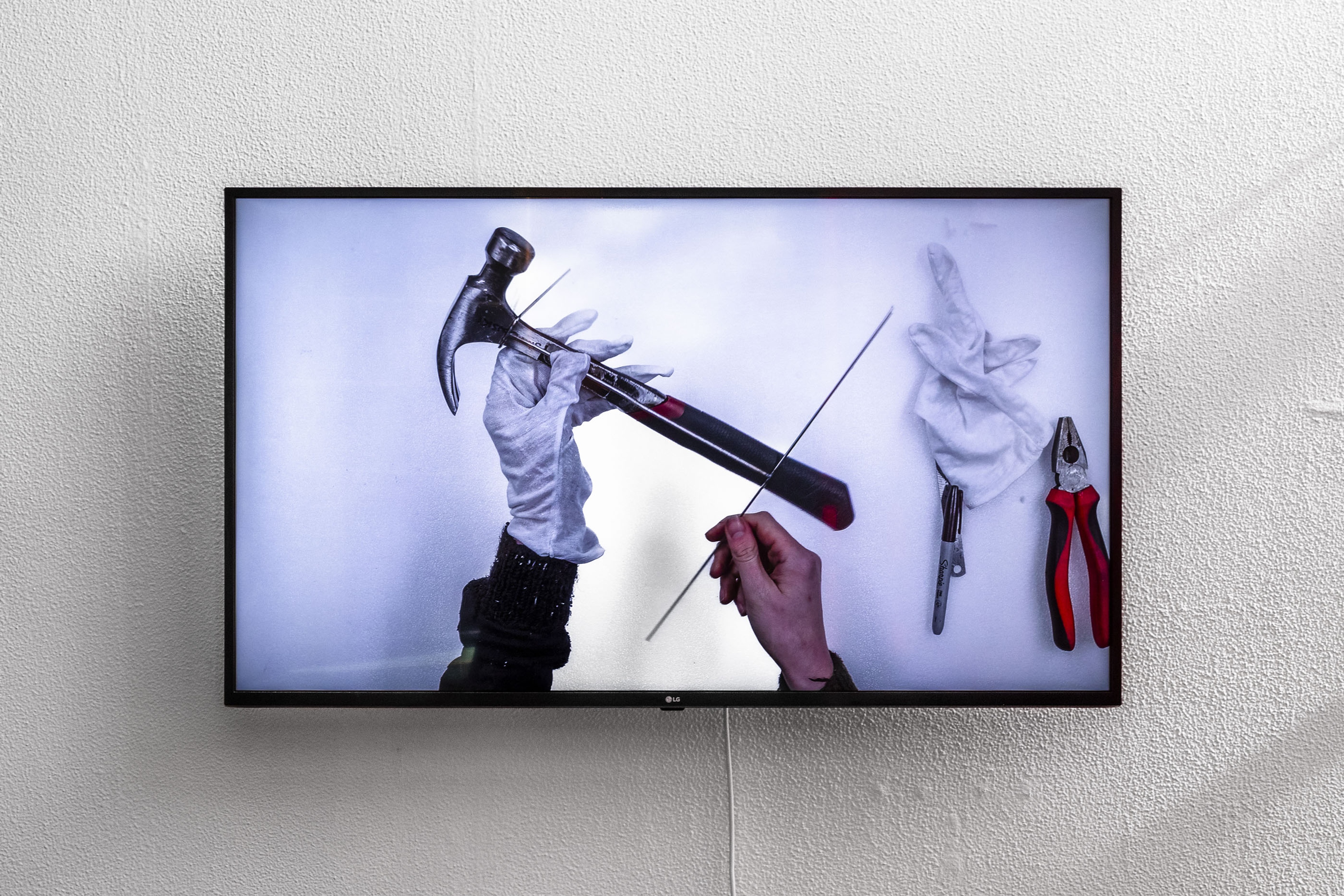 Sophia Smolenski, digital video, 55 mins, looped, 2023. Installation view, Sophia Smolenski: Offering It Up, in Back of House, Te Pātaka Toi Adam Art Gallery, Te Herenga Waka—Victoria University of Wellington, 2023. Photo: Ted Whitaker