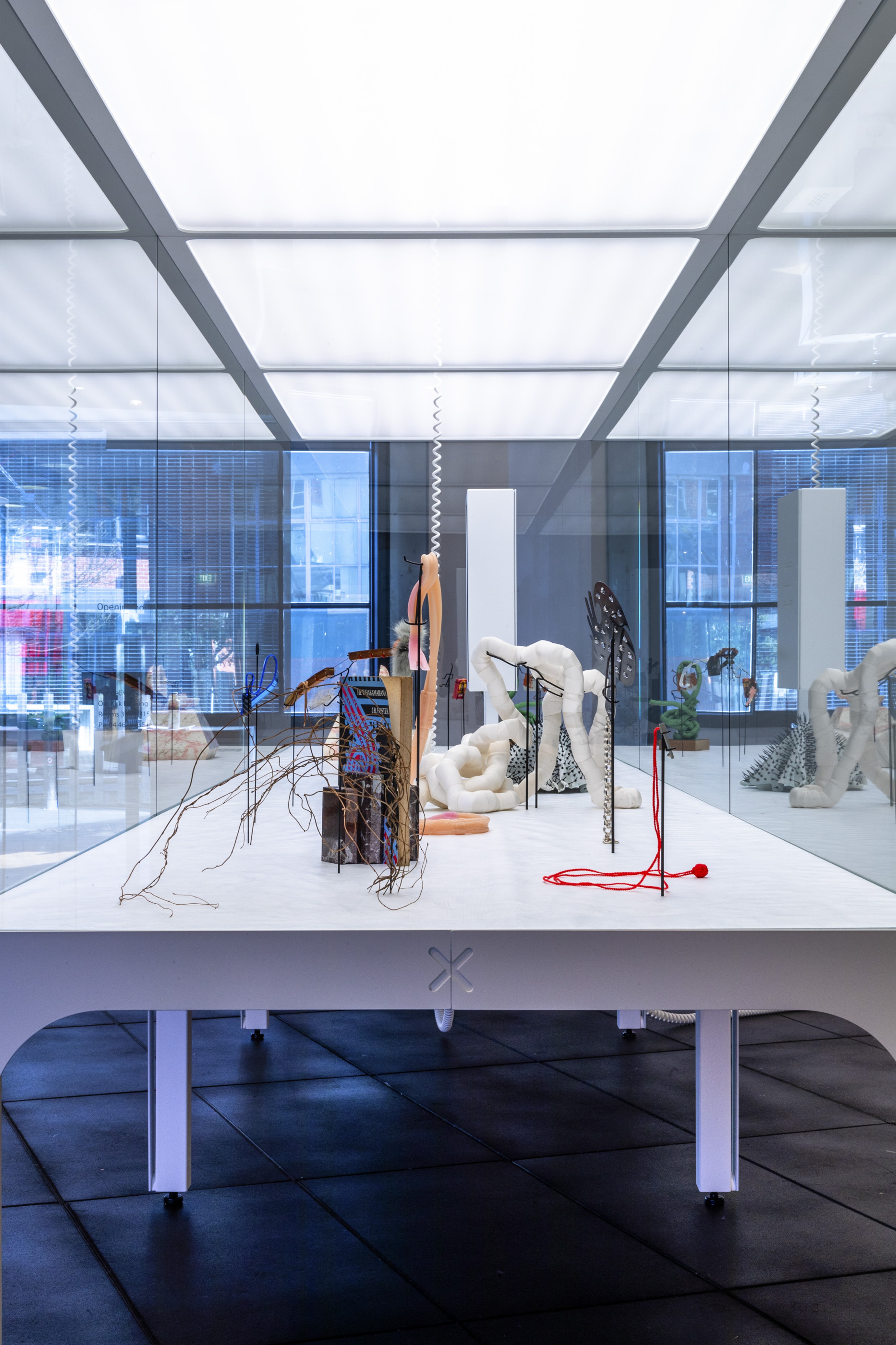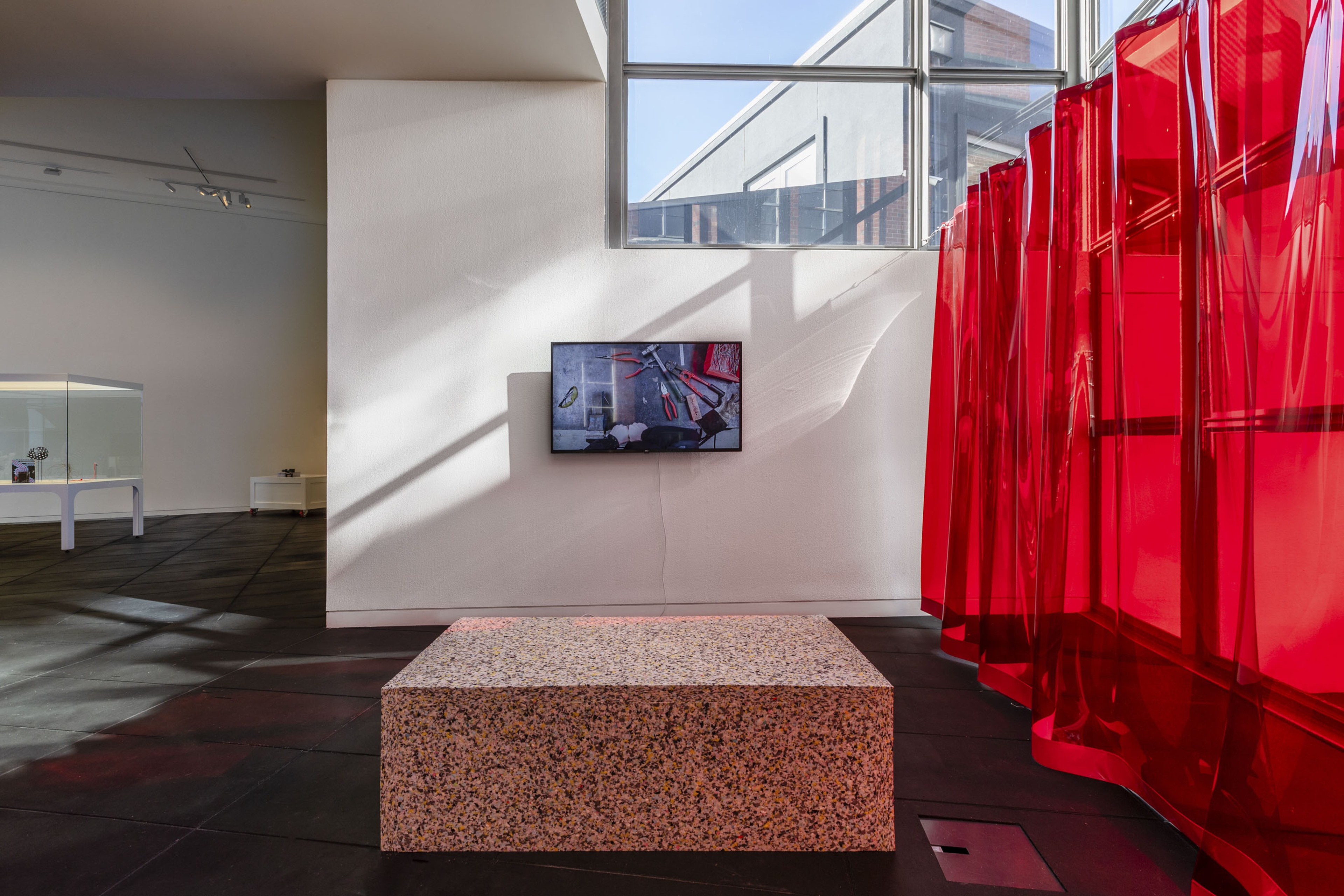 Installation view, Sophia Smolenski: Offering It Up, in Back of House, Te Pātaka Toi Adam Art Gallery, Te Herenga Waka—Victoria University of Wellington, 2023. Photo: Ted Whitaker
