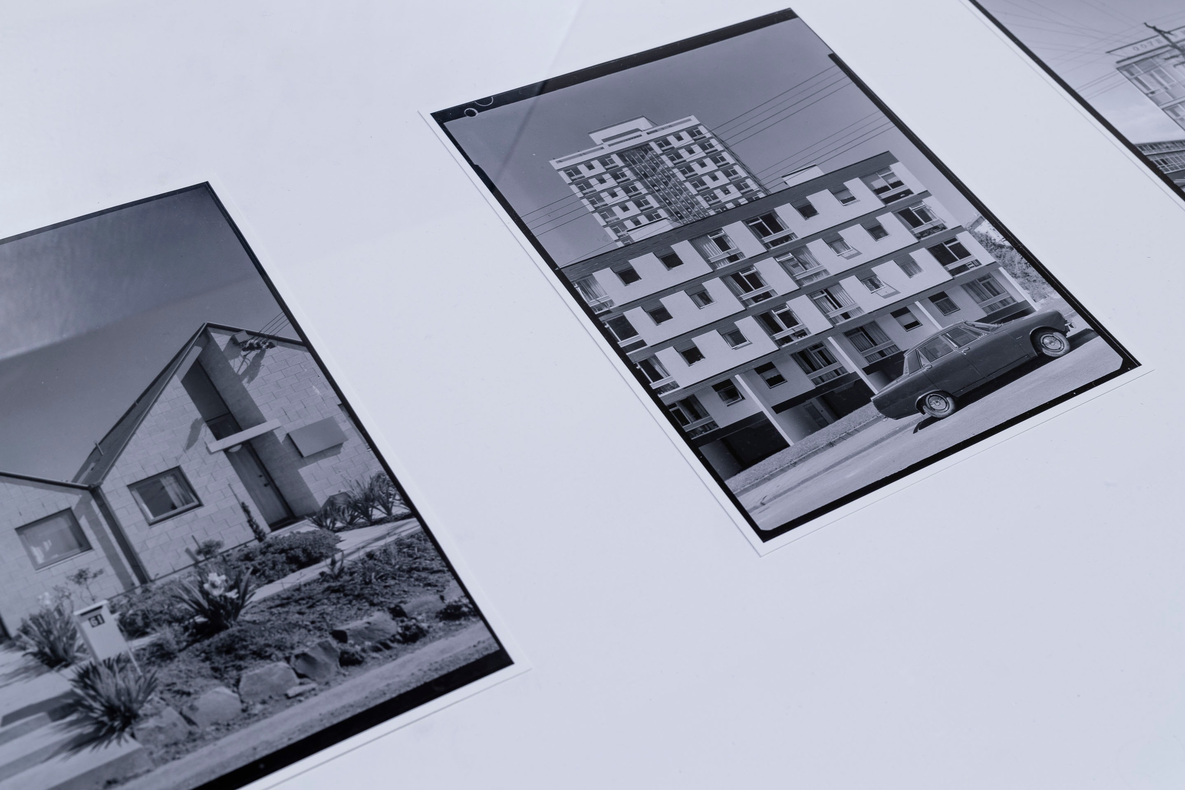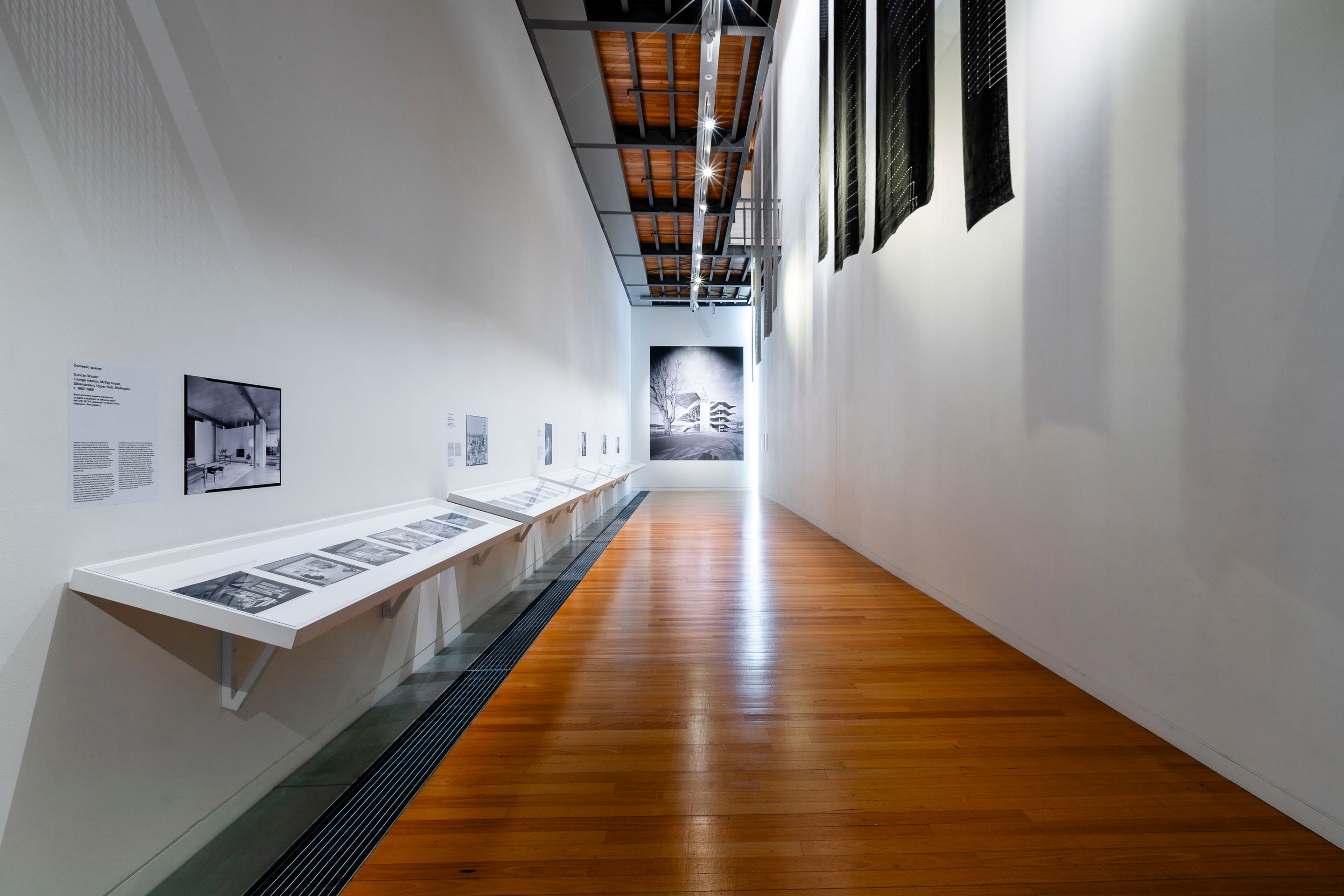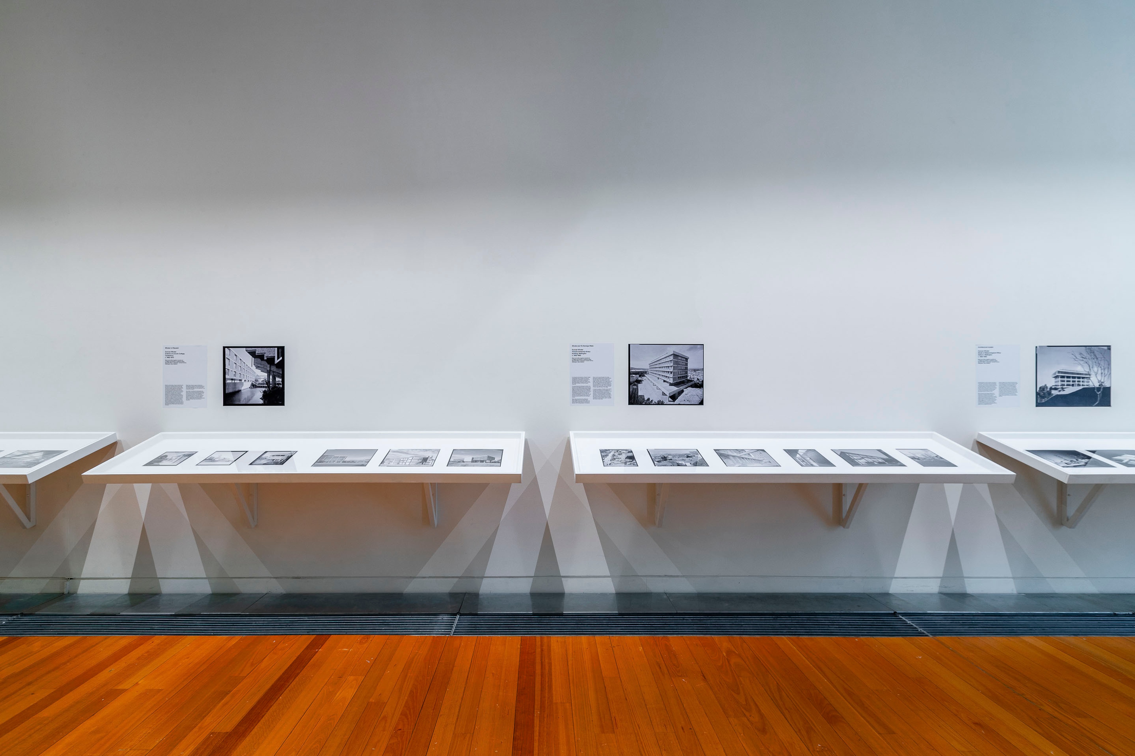 Installation view Duncan Winder: architectural photographs, Te Pātaka Toi Adam Art Gallery, Te Herenga Waka—Victoria University of Wellington, 2024. Photo: Ted Whitaker.