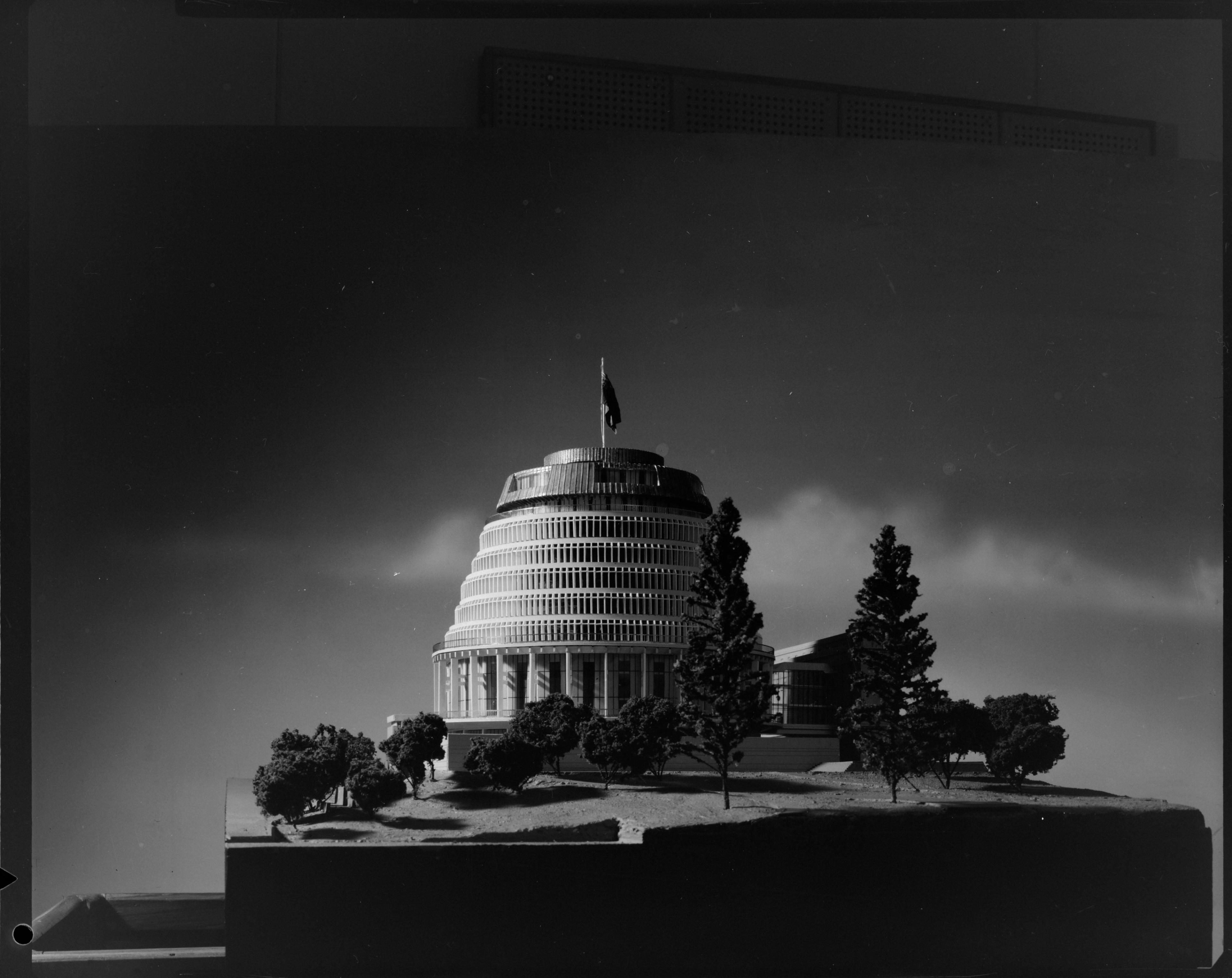 Duncan Winder, Architect’s concept model, proposed Beehive, Parliament buildings, Wellington, c. 1962-1965. Ref: DW-1482-F. Alexander Turnbull Library, Wellington, New Zealand.