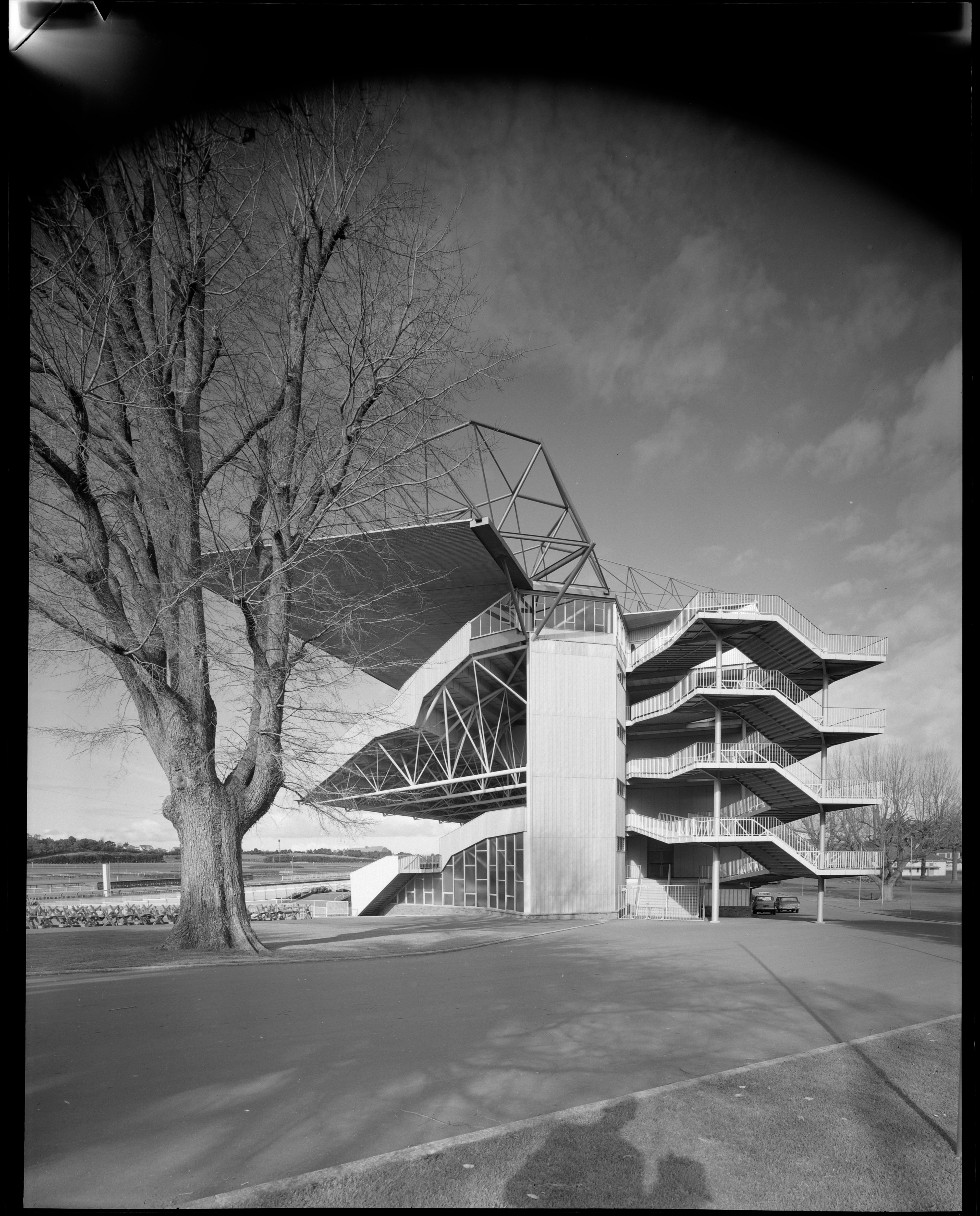 Duncan Winder was born in Prescot, United Kingdom in 1919. He studied architecture at the Liverpool School of Architecture, emigrating to Aotearoa in 1955, where he settled in Te Whanganui-a-Tara. He worked at the architectural firm Gray Young Morton and Calder, where he worked alongside architects Michael Fowler and Daryl Cockburn, and worked on the design of the Easterfield building at Te Herenga Waka—Victoria University of Wellington. He subsequently left architectural practice to commit to full-time photography, and with his architectural eye, produced a seminal body of images of post-war architecture. Long an overlooked figure of architectural photography, despite his significant contribution, his archive has recently been digitised and made publicly accessible. Winder died in Te Whanganui-a-Tara in 1970.