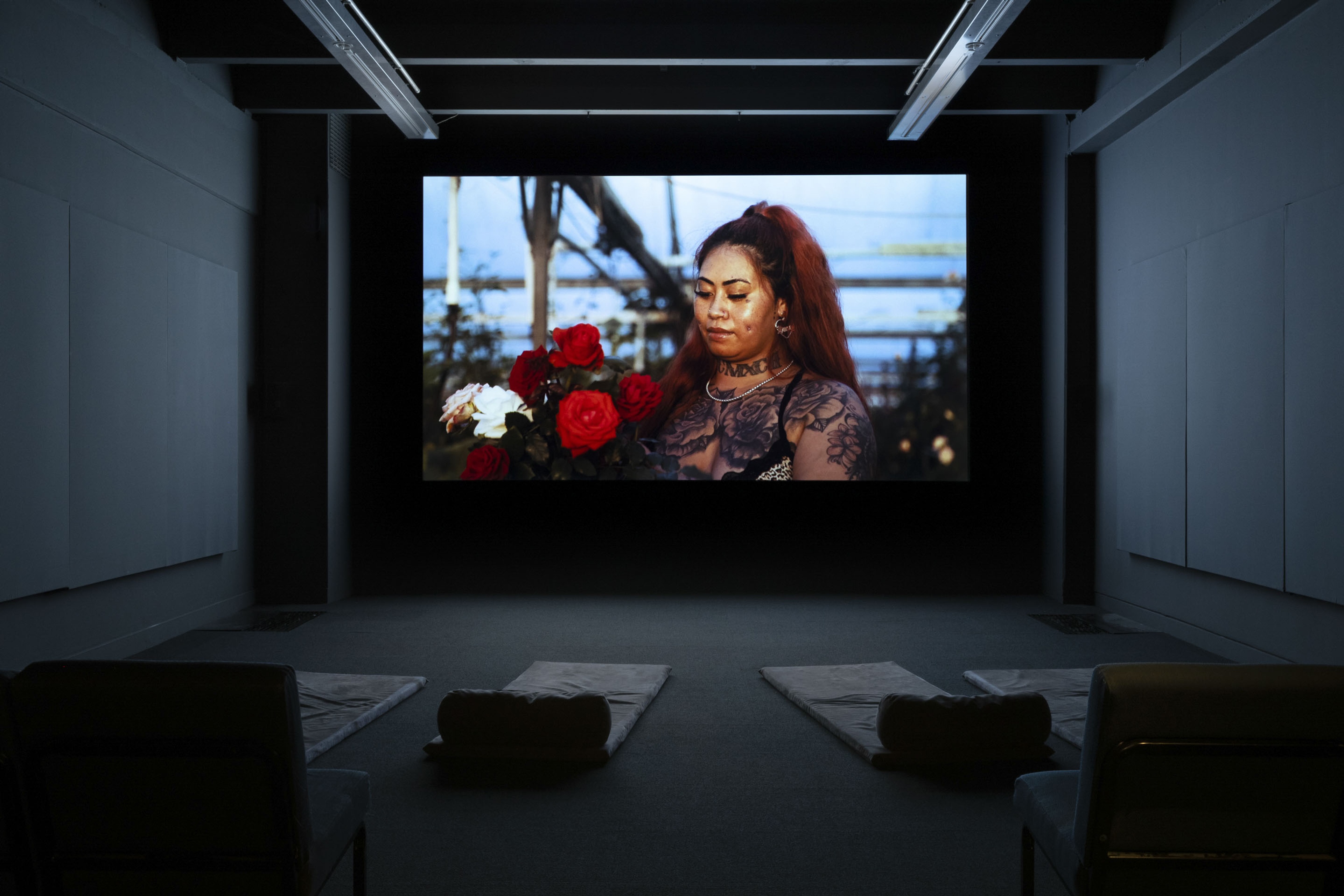 Edith Amituanai, Epifania, 2022, digital video, commissioned by CIRCUIT with the assistance of Creative New Zealand Toi Aotearoa. Installation view, Legacies: Five Short Artist Films, Te Pātaka Toi Adam Art Gallery, Te Herenga Waka—Victoria University of Wellington. Photo: Ted Whitaker