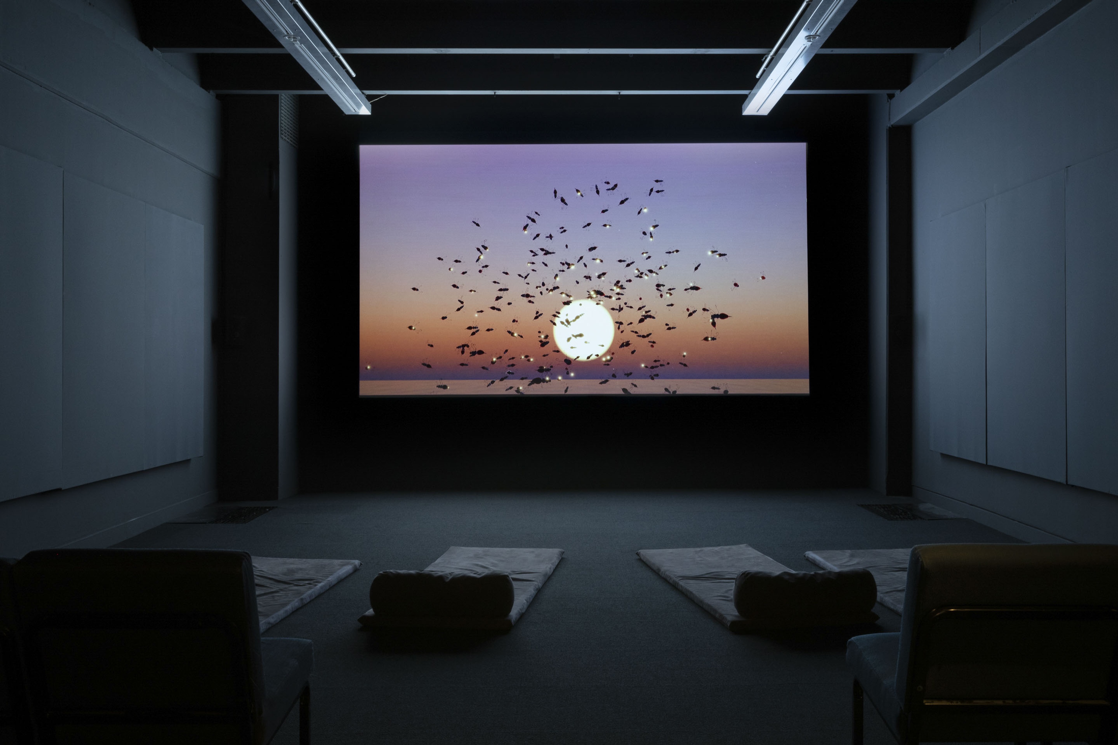 Sriwhana Spong, And the creeper keeps on reaching for the flame tree, 2022, digital video, 5 mins 3 secs, commissioned by CIRCUIT with the assistance of Creative New Zealand Toi Aotearoa. Installation view, Legacies: Five Short Artist Films, Te Pātaka Toi Adam Art Gallery, Te Herenga Waka—Victoria University of Wellington. Photo: Ted Whitaker