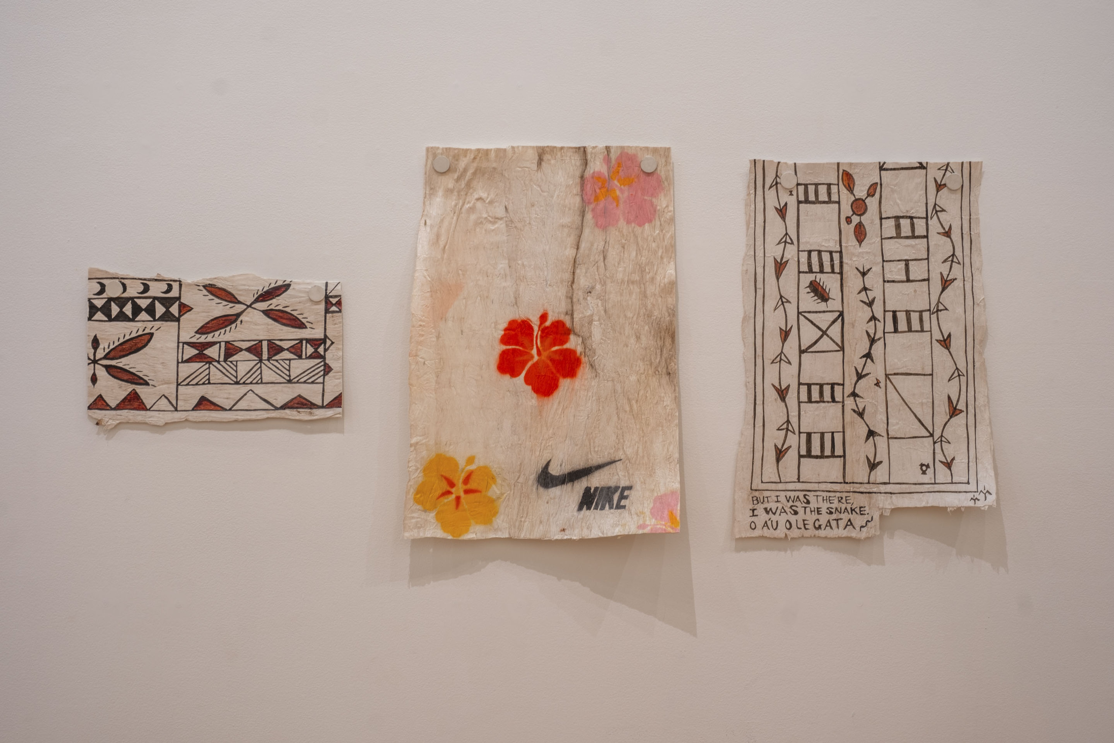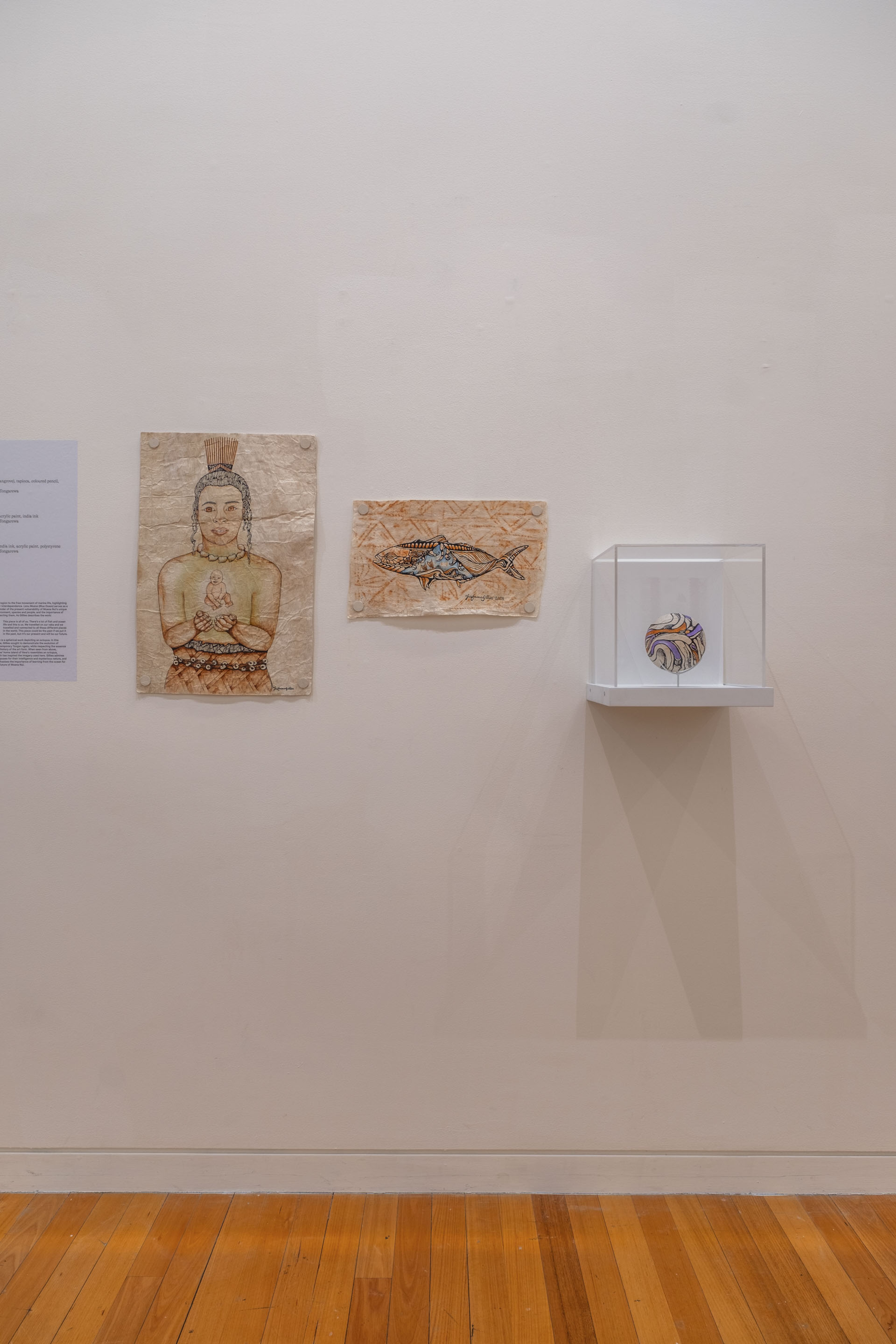 Sara Vaki, 2023. Collection of Museum of New Zealand Te Papa Tongarewa. Commissioned 2023.Installation view, ’Ahu: Ngā Wairua o Hina, Vaiei Tupuna, Te Pātaka Toi Adam Art Gallery, Te Herenga Waka—Victoria University of Wellington, 2024. Photo: Ted Whitaker.