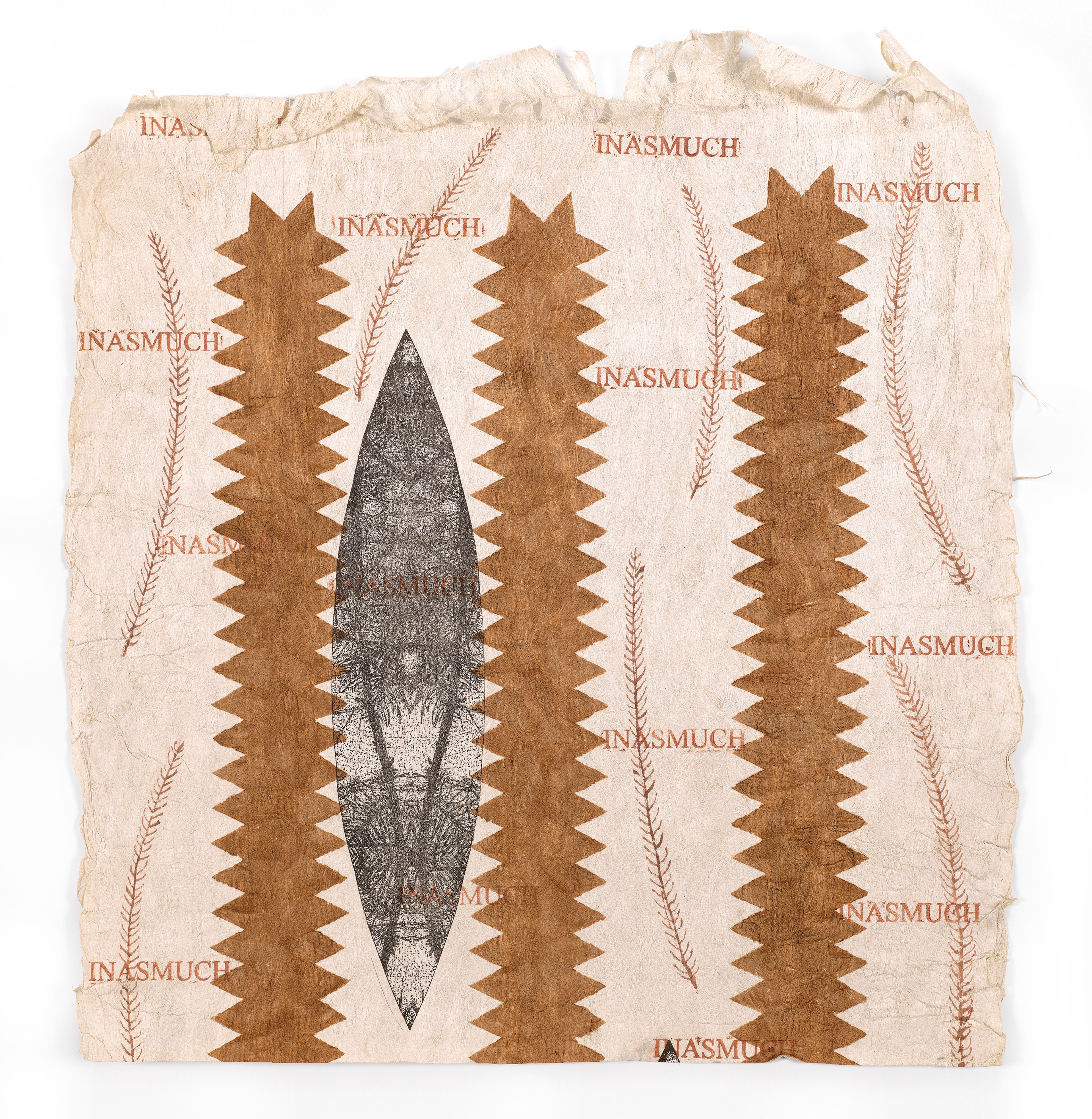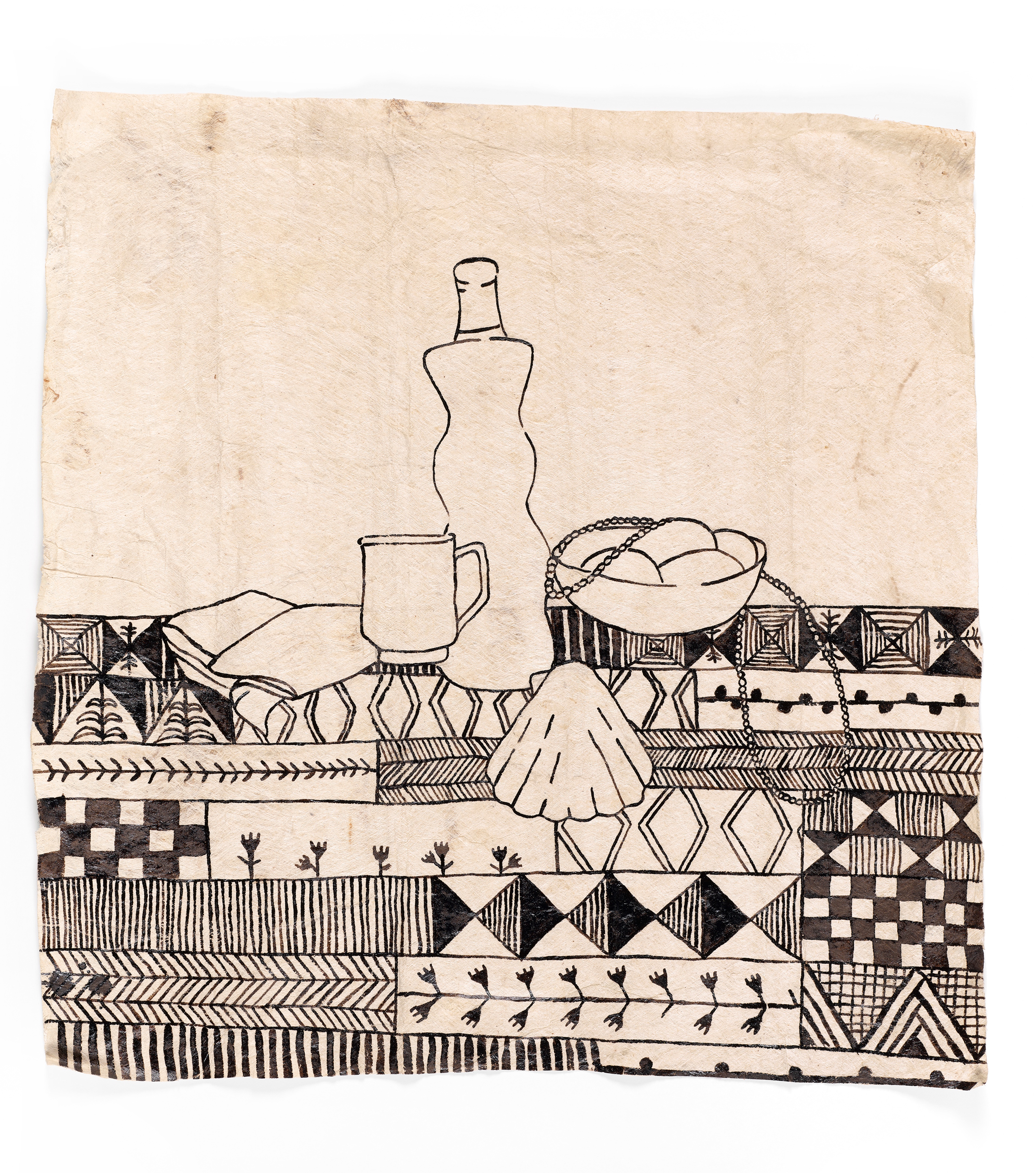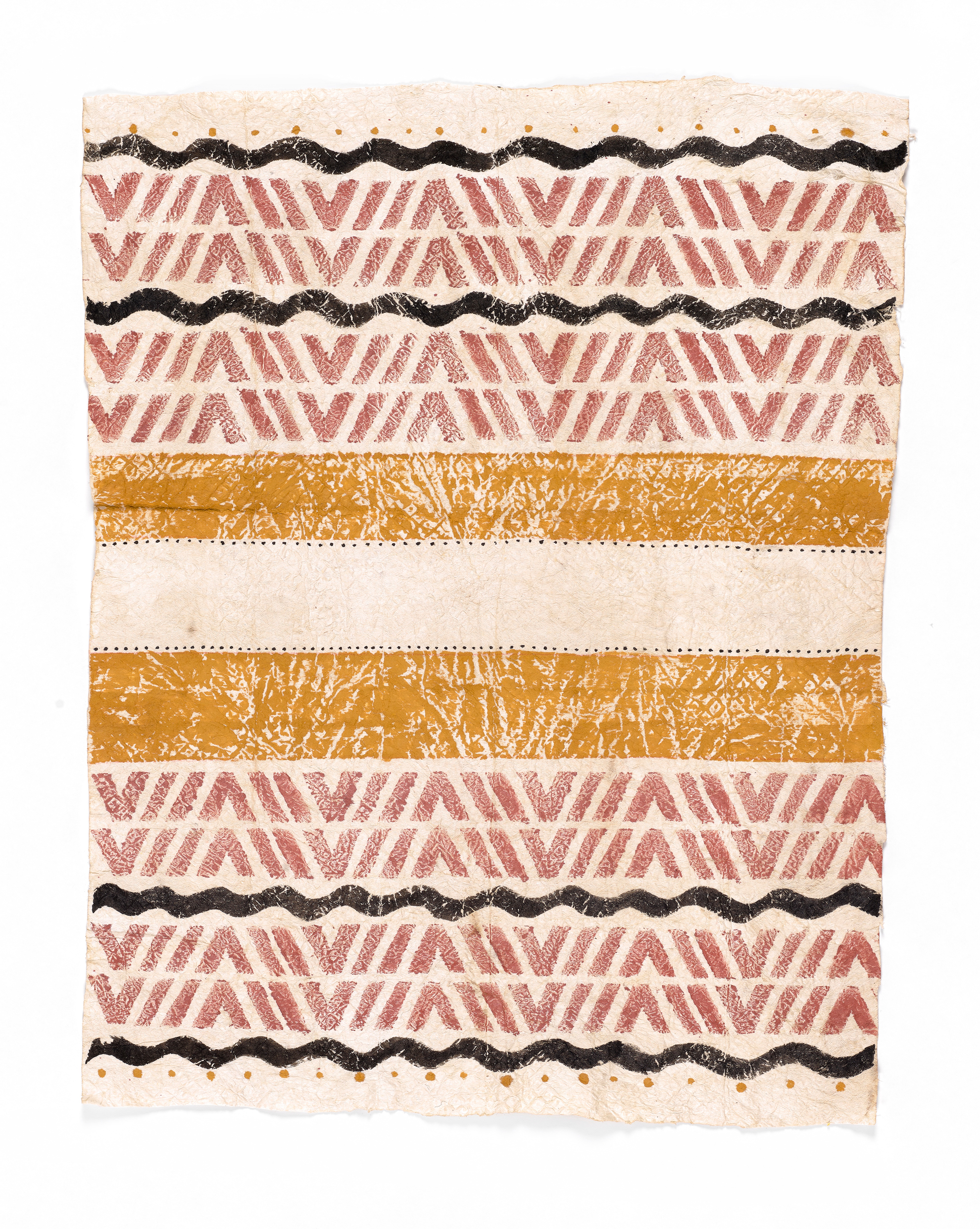 Dalani Tanahy, Kupuna, 2023, natural pigment and cuttlefish ink wauke, Collection of Museum of New Zealand Te Papa Tongarewa, commissioned 2023.