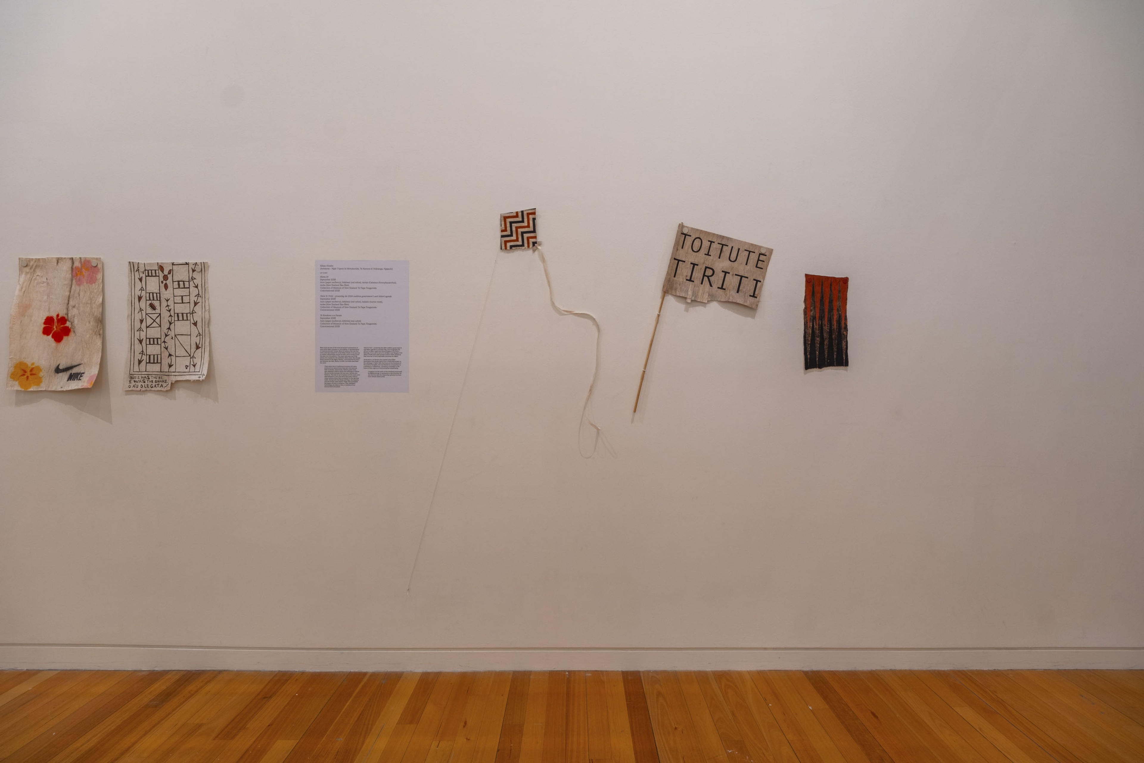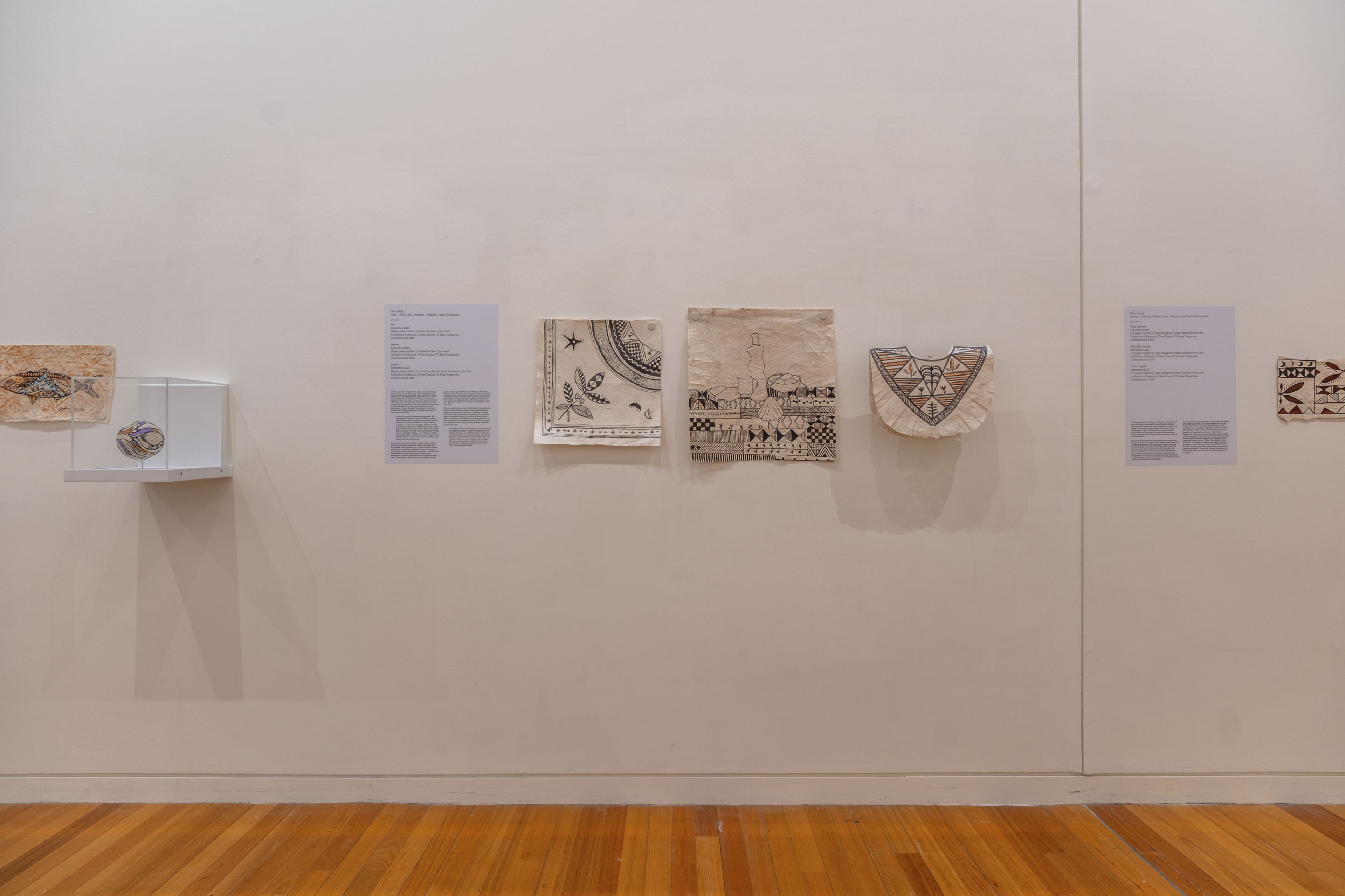 Sulieti Fieme’a Burrows, 2023.Collection of Museum of New Zealand Te Papa Tongarewa. Commissioned 2023. Installation view, ’Ahu: Ngā Wairua o Hina, Vaiei Tupuna, Te Pātaka Toi Adam Art Gallery, Te Herenga Waka—Victoria University of Wellington, 2024. Photo: Ted Whitaker.