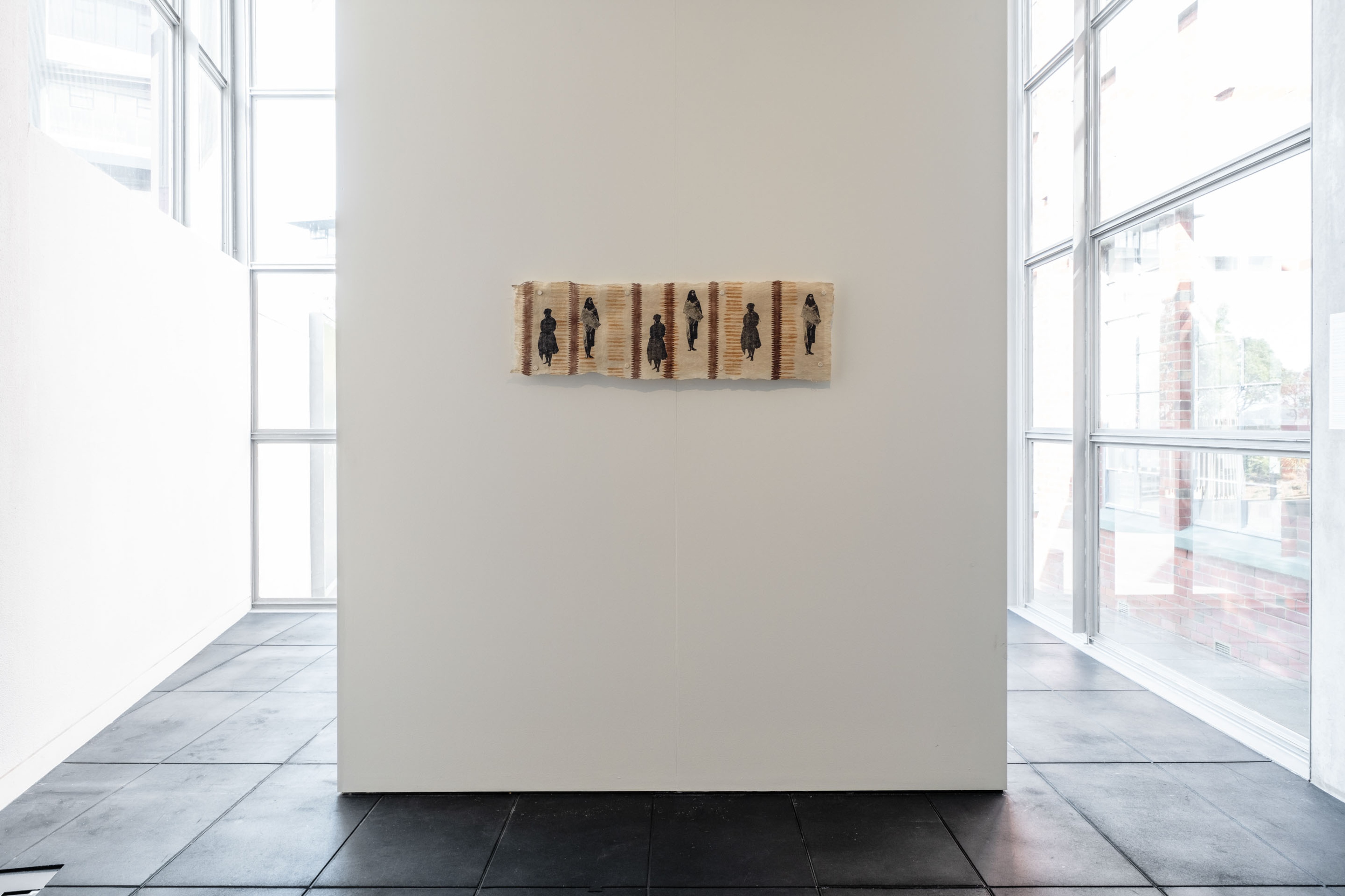 Sue Pearson, “Said Wi Es” - Where We Are, 2023, etching ink on 'ahu, Collection of Museum of New Zealand Te Papa Tongarewa, commissioned 2023.