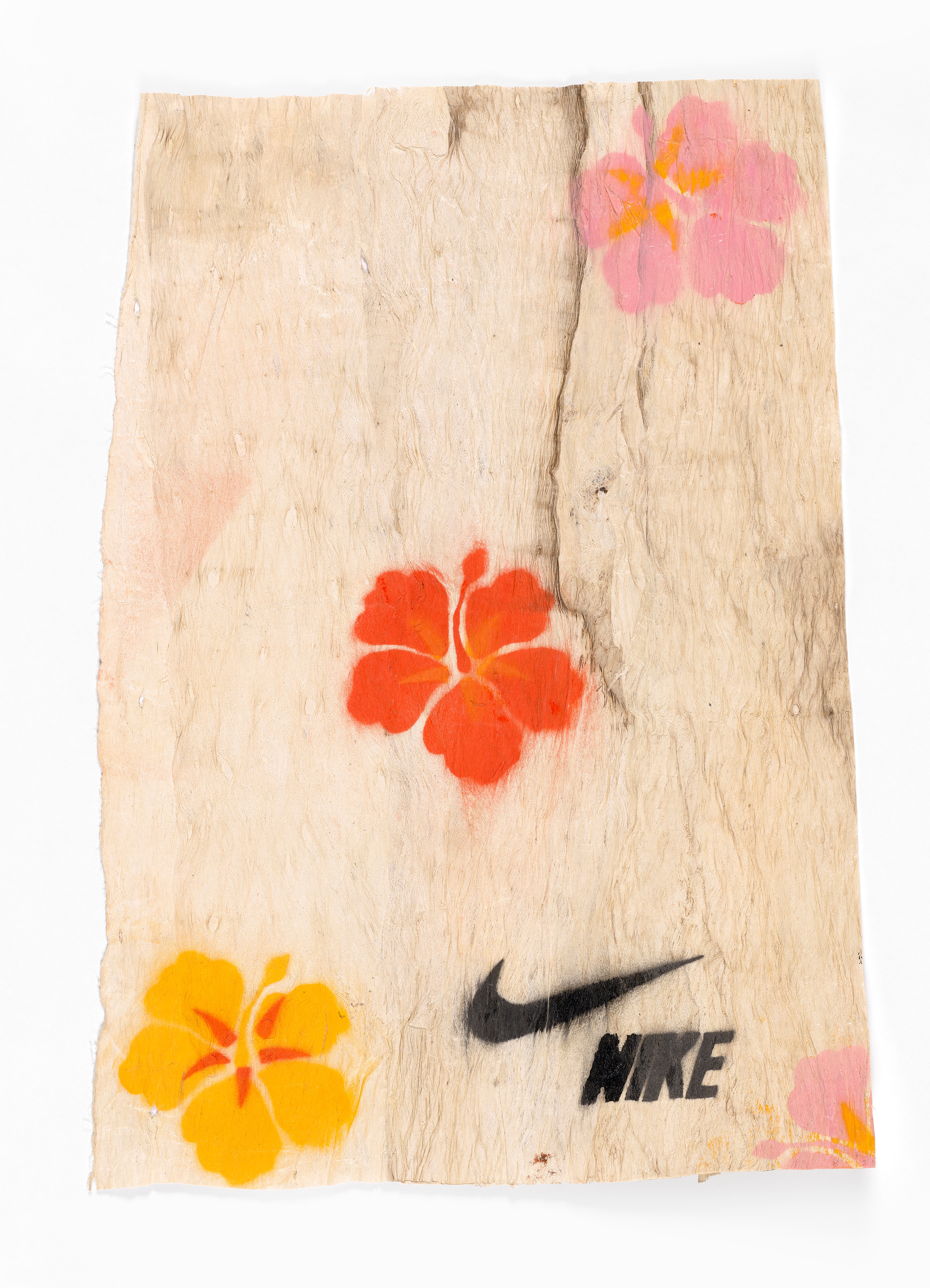 Doron Semu, Nike, (Fa’a masina), 2023, spray painted siapo, Collection of Museum of New Zealand Te Papa Tongarewa, commissioned 2023.