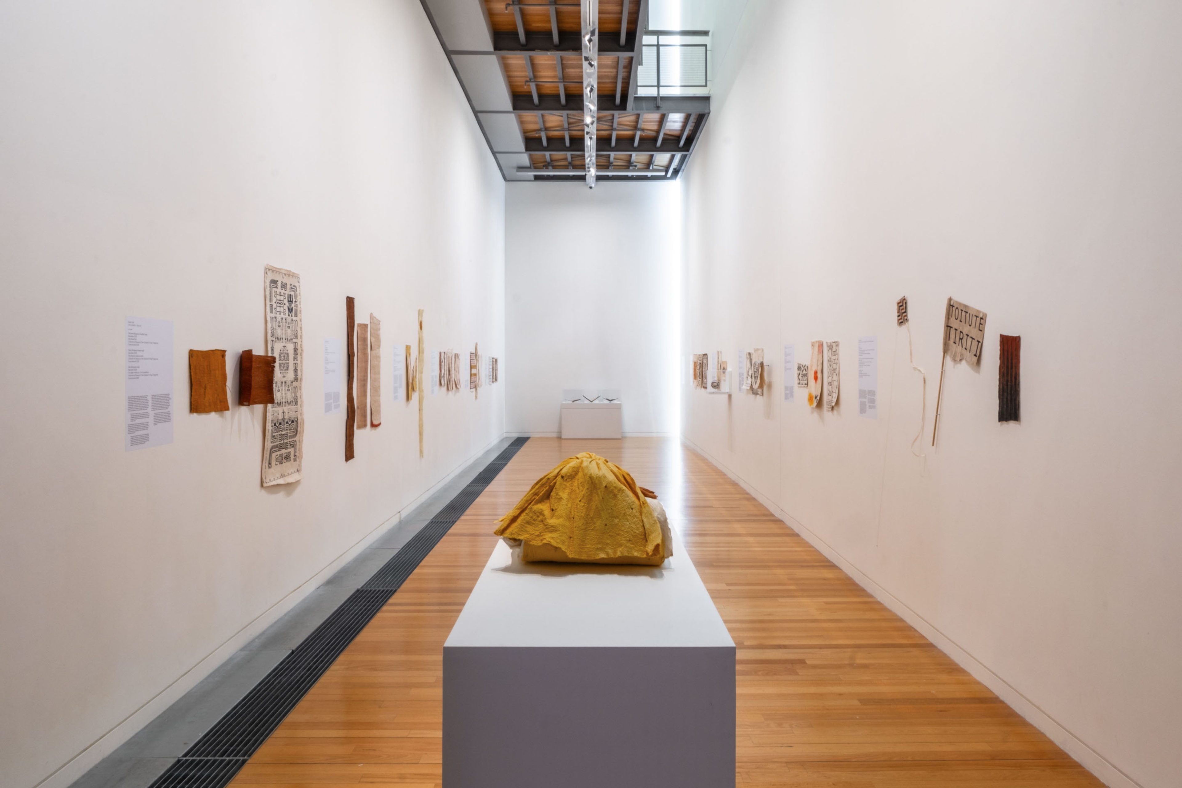 Tui Emma Gillies, 2023. Collection of Museum of New Zealand Te Papa Tongarewa. Commissioned 2023. Installation view, ’Ahu: Ngā Wairua o Hina, Vaiei Tupuna, Te Pātaka Toi Adam Art Gallery, Te Herenga Waka—Victoria University of Wellington, 2024. Photo: Ted Whitaker.